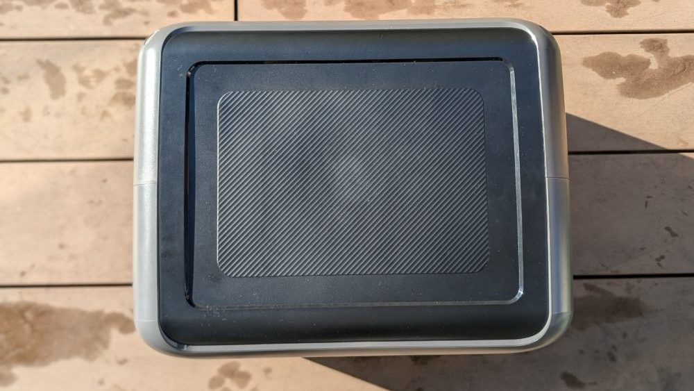 質感はマットなグレーで、主張しすぎないデザイン。威圧感がないので、部屋やテントに置いておいても馴染みやすいです。
