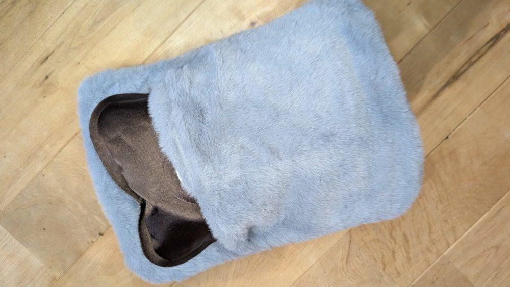 付属のカバーはウサギの毛のようなふわふわ素材で、触り心地が最高です。真ん中が空洞になっているので、手を中に通して温めることもできます。